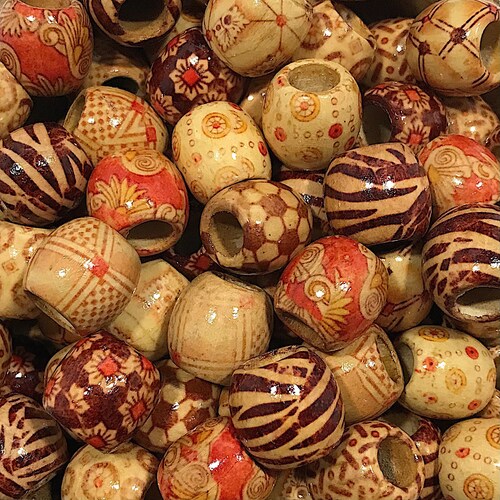 50pcs Multi Patterned Large Hole Wooden Beads 16mmx16mm Hole Etsy