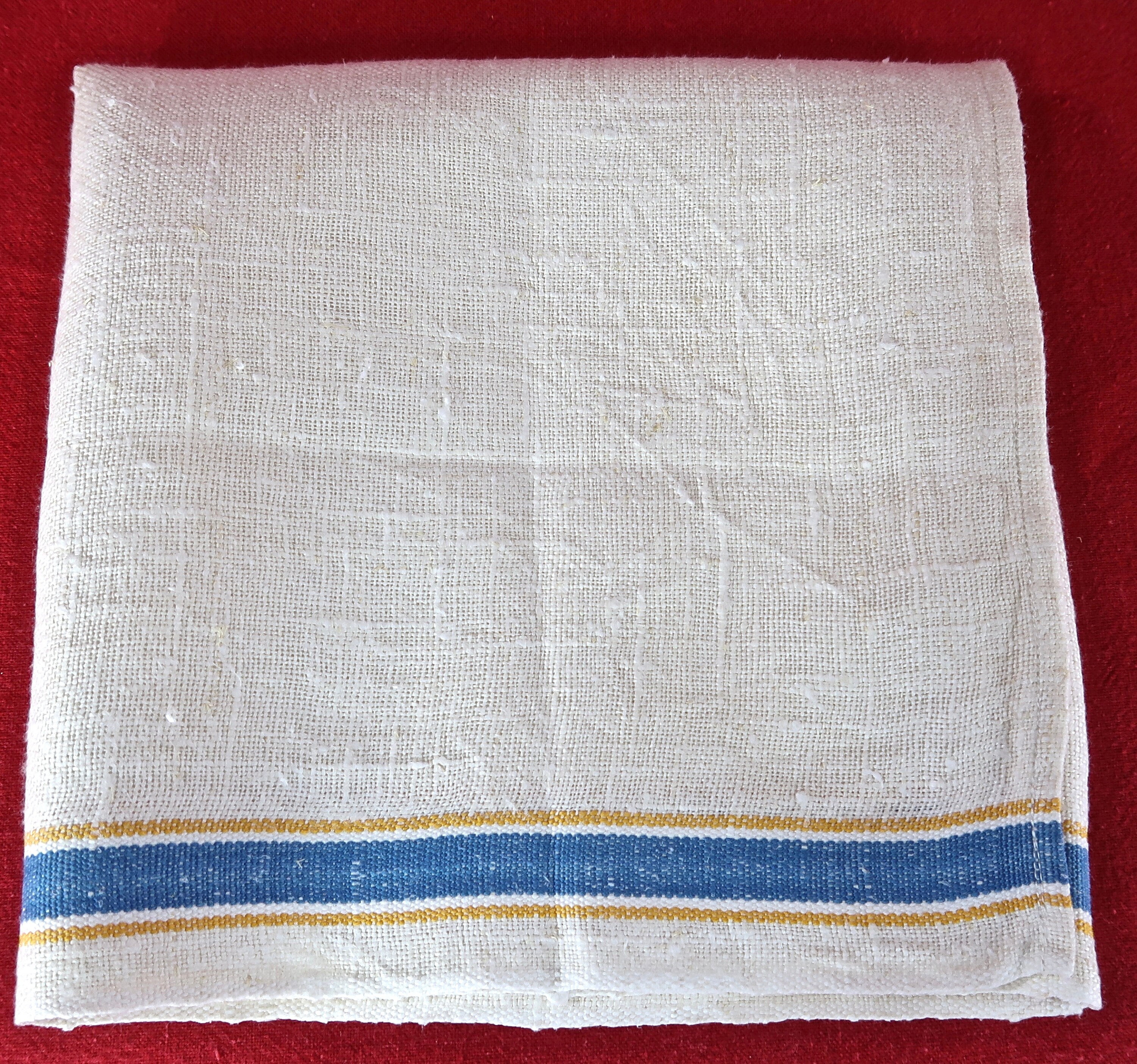 Vintage Towel With Blue And Yellow Stripes On Natural Loose Etsy Canada