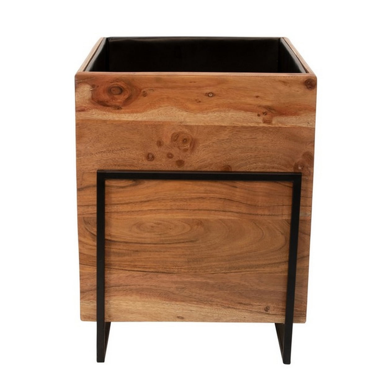 18 Inch Square Wood Planter With Metal Frame Base Set Of 2 Brown And Black Saltoro Sherpi Walmart Com